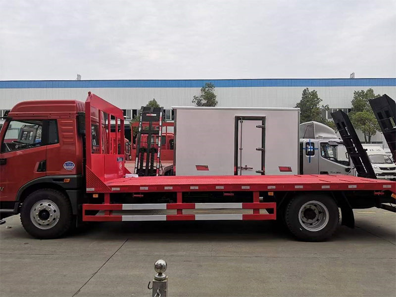上裝配置:橫梁采用100X100規格方管,貨箱平板采用5mm后花紋板,爬梯采用雙彈簧爬梯,帶有后支腿。(可選裝單節液壓爬梯,雙節液壓爬梯,無爬梯帶斜坡等結構)