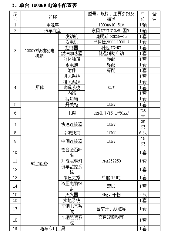 (1)每臺電源車都具有并機功能和相應的并機裝置。